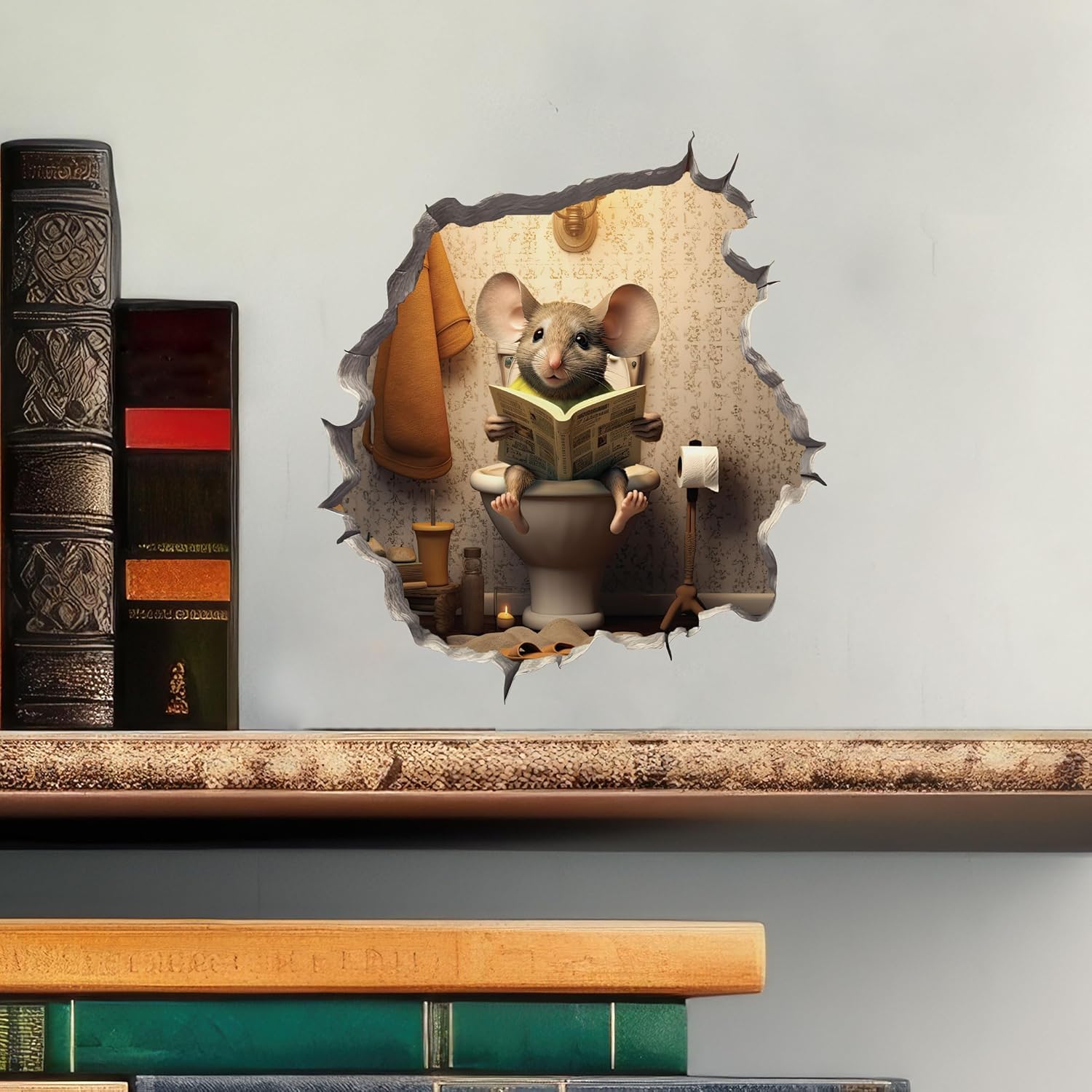 3D Wall Decor Sticker Decal, Kids Room, Classroom, Home, Bedroom, Bookcase, Book Lover, of Mice and Men, Children, Adorable, (Mouse Reading Newspaper, 4 inch x 4 Inch)