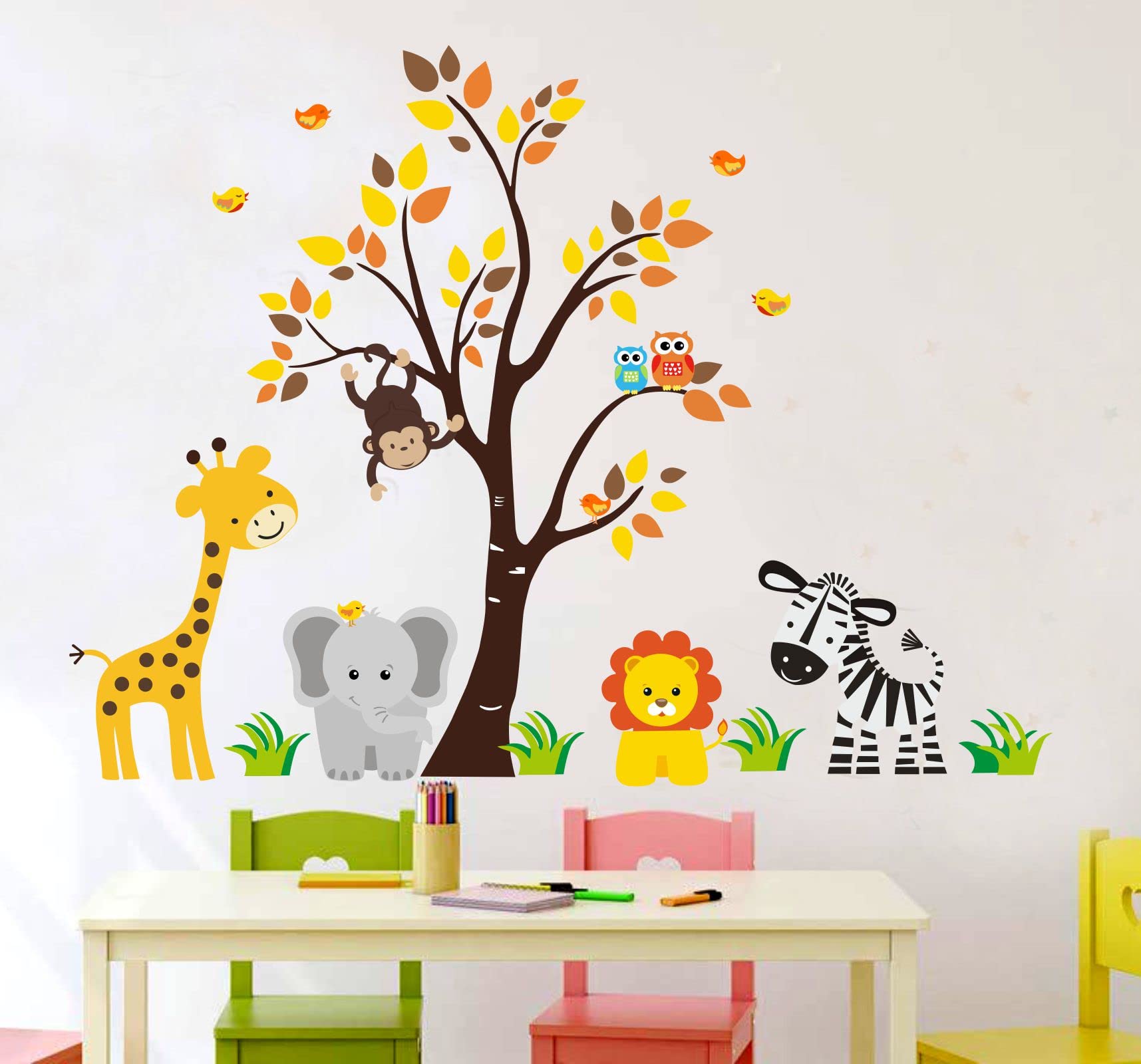 Animal Wall Sticker for Kids Room Size 95cm X 115cm, Peel and Stick Jangals Set Wall Decal for Nursery, Kids Wall Decor, Jungal Themed Decals, (Giraffe)