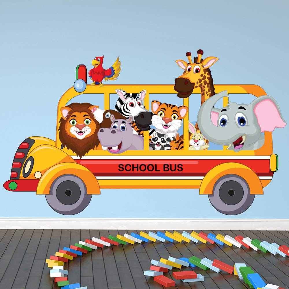 Educational Wall Stickers for Kids Room & Nursery – Fun Learning Decor for Playgroup, Preschool & Kindergarten (Animal School Bus, Small)