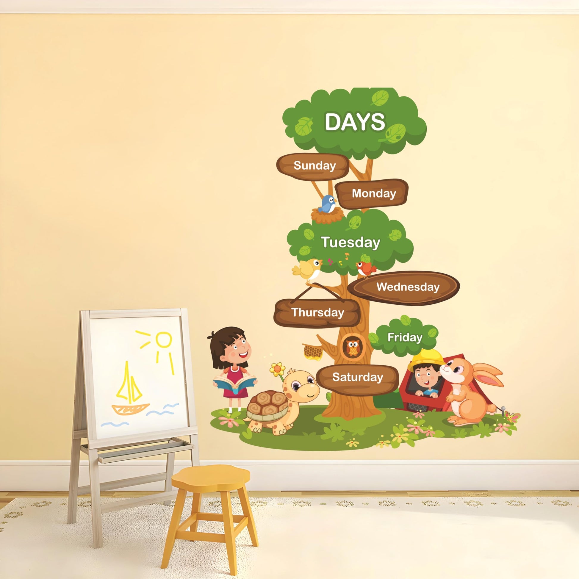 Educational Wall Stickers for Kids Room & Nursery – Fun Learning Decor for Playgroup, Preschool & Kindergarten Day of Weeks