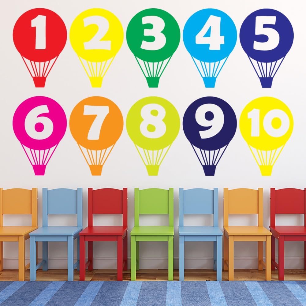 Educational Wall Stickers for Kids Room & Nursery – Fun Learning Decor for Playgroup, Preschool & Kindergarten (Hot Air Balloon Number, Small)