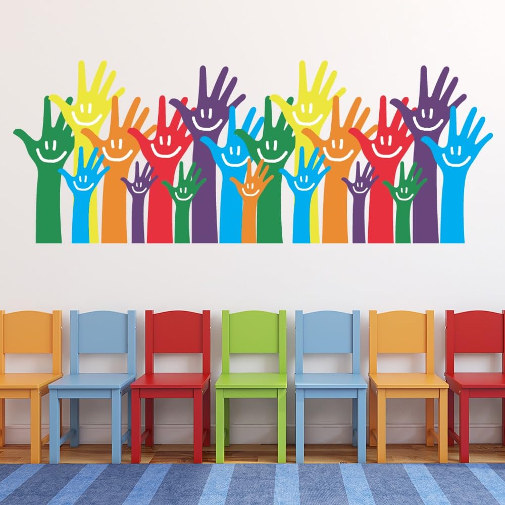 Educational Wall Stickers for Kids Room & Nursery – Fun Learning Decor for Playgroup, Preschool & Kindergarten Smiling Hands Unity