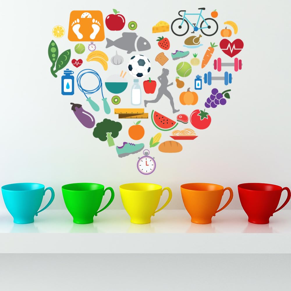 Educational Wall Stickers for Library, School Labs & Classrooms – Learning Decor with Motivational Quotes, Science, Math & Reading Themes – Removable Vinyl Decals (Healthy Lifestyle, Small)