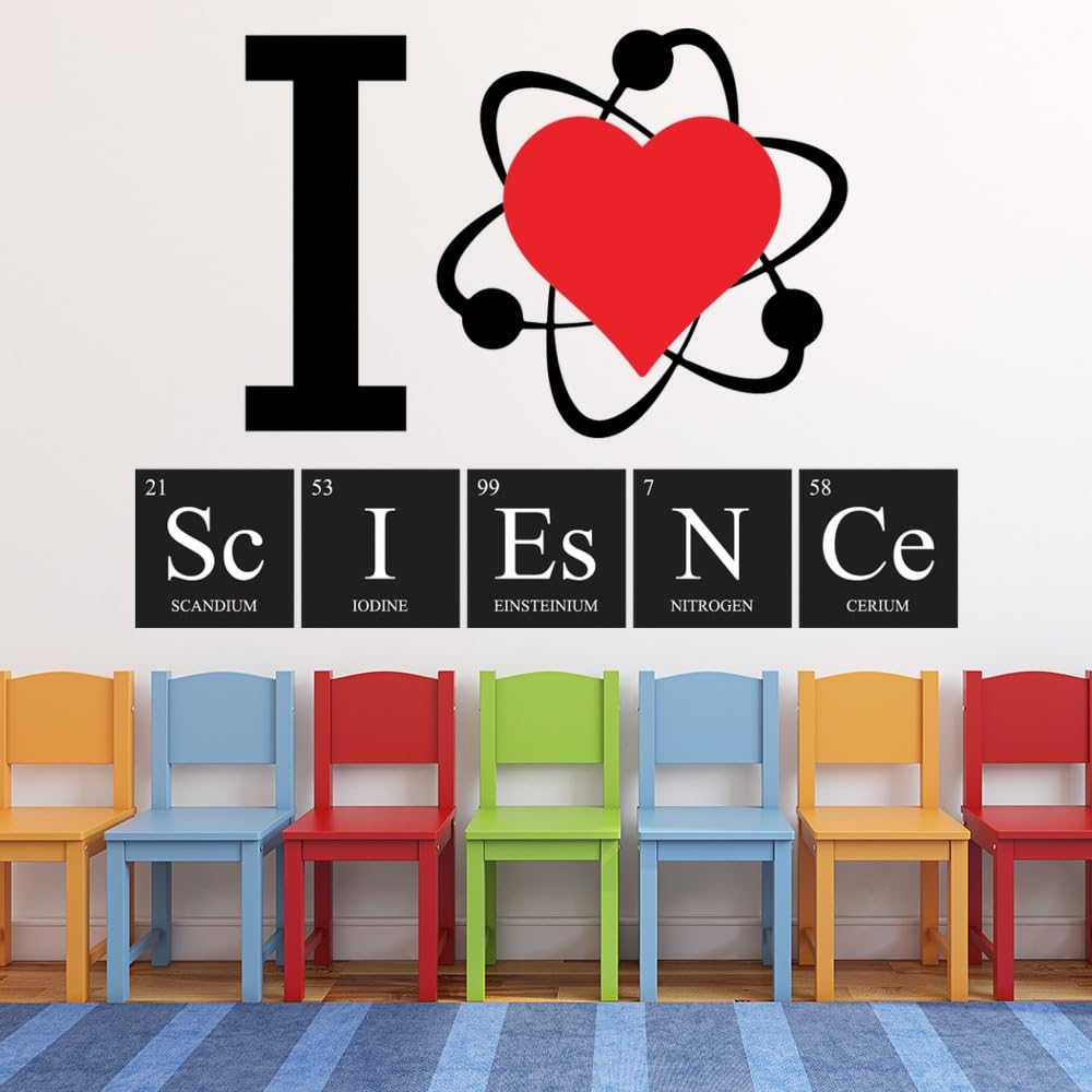Educational Wall Stickers for Library, School Labs & Classrooms – Learning Decor with Motivational Quotes, Science, Math & Reading Themes – Removable Vinyl Decals (I Love Science, Small)
