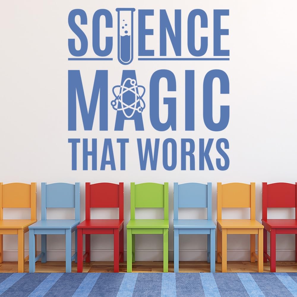 Educational Wall Stickers for Library, School Labs & Classrooms – Learning Decor with Motivational Quotes, Science, Math & Reading Themes – Removable Vinyl Decals Science Magic That Works